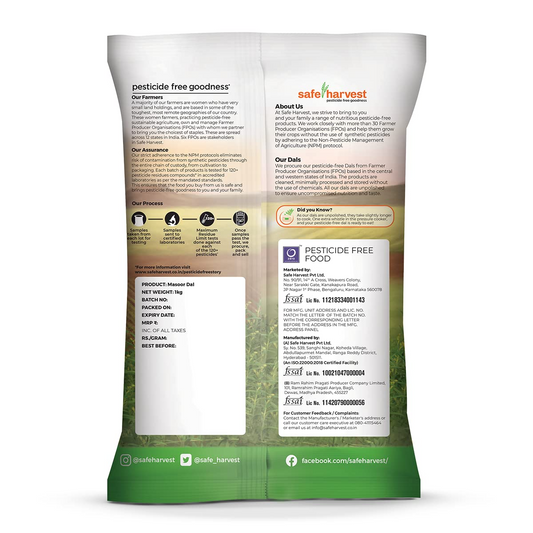 Safe Harvest Pesticide-Free Unpolished Masoor Dal | Pure & Natural - 1kg