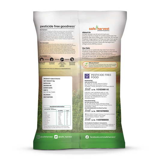 Safe Harvest Pesticide-Free Kabuli Chana | Vegan | Gluten Free - 1kg