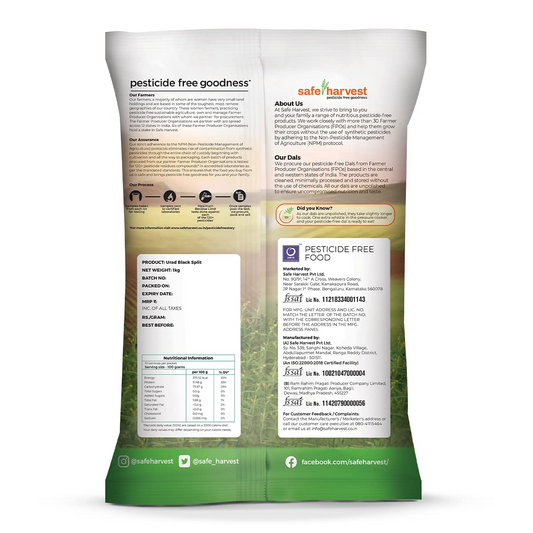 Safe Harvest Pesticide-Free Unpolished Urad Black Split | Vegan | Gluten Free | Natural & Delicious - 1 Kg