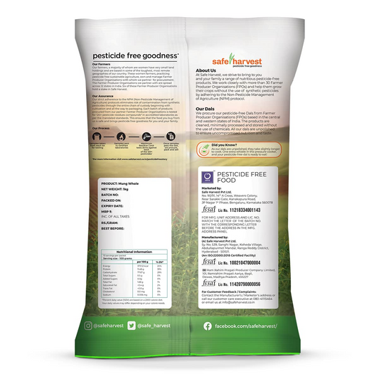Safe Harvest Pesticide-Free Goodness Mung Green Whole Dal | Vegan | Gluten Free - 1kg