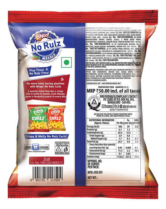 Bingo! No Rulz Masala Curlz, 80g, Masala Flavoured Super Light & Super Tasty Baked Puffs
