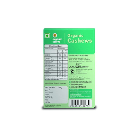 Organic Tattva 'Cashews', Naturally Processed, No Artificial Additives (Pack of 1(100gm))