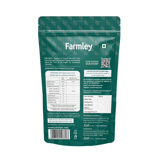 Farmley Premium Diced Papaya Dried Fruits 200 gram | No Added Colours and Preservatives | Sweet and Delicious Real Papaya Taste