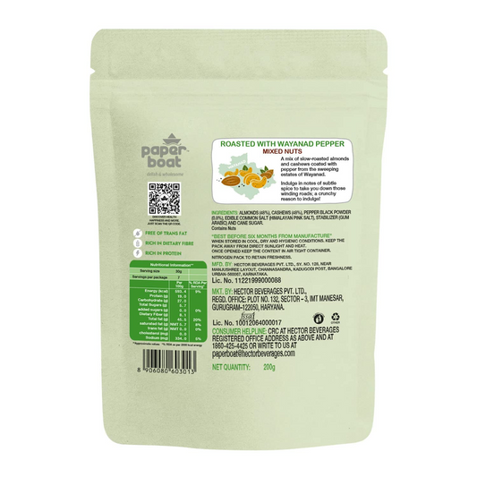 Paper Boat Roasted Mixed Nuts with Wayanad Pepper, Premium Dry Fruit Mix | Almonds & Cashews, Pouch (200g)