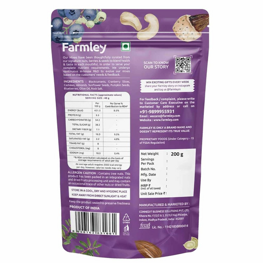 Farmley Premium Trail Mix | 200g | 7 Superfoods in 1 Mix | Contains Almonds, Pumpkin Seeds, Cashew, Sunflower Seeds, Blueberries|