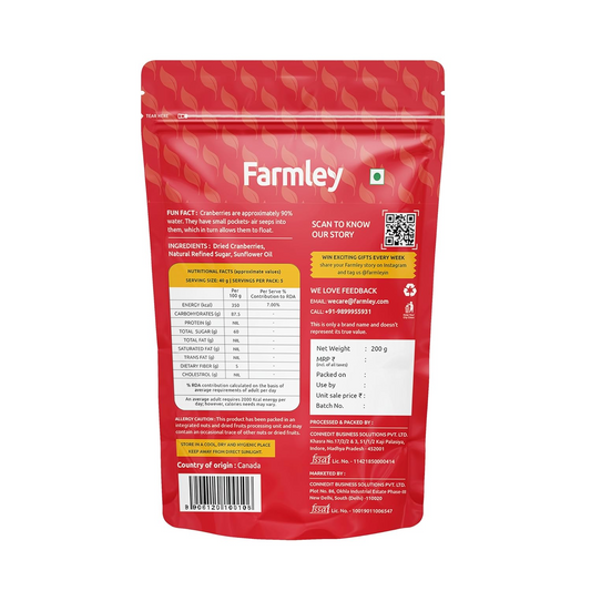Farmley Premium Whole Canadian Dried Cranberry Dry Fruit 200 g | High Nutrient and Antioxidant