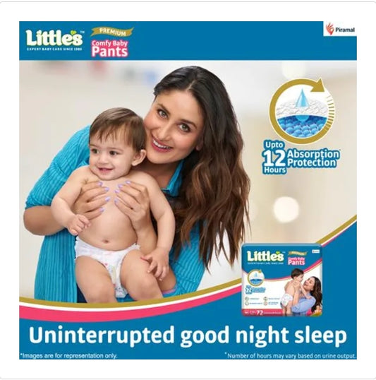 Littles Baby Diaper Pants Premium Jumbo - M, Wetness Indicator, 12 Hours Absorption & Cotton Soft, 72 pc