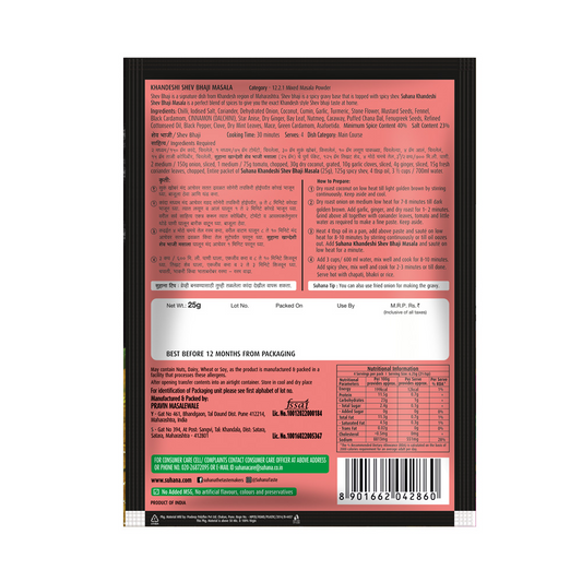 Suhana Khandeshi Shev Bhaji Masala 25g Pouch