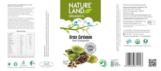 Natureland Organics Green Cardamom 75 Gm - Organic Hari Elaichi