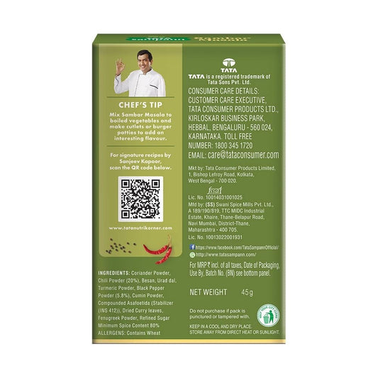 Tata Sampann Sambar Masala Powder with Natural Oils, Rich Aroma & Flavor, Crafted by Chef Sanjeev Kapoor, 45g