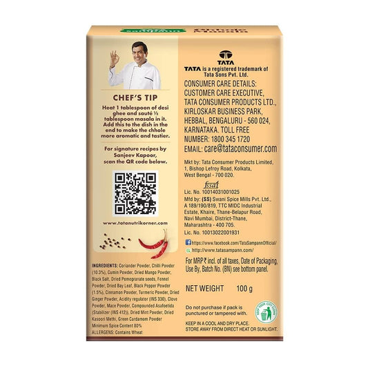 Tata Sampann Chhole Masala with Natural Oils, Crafted by Chef Sanjeev Kapoor, 100g