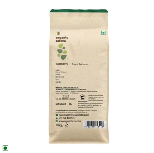 Organic Tattva Organic Bay Leaves - Natural, Vegan, Gluten-Free & No Additives, 50 g