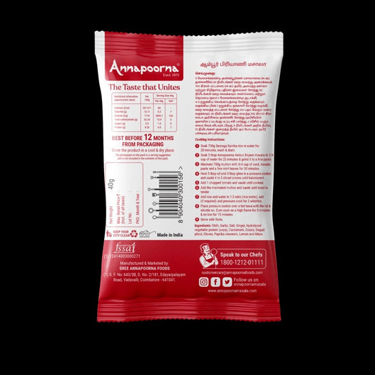 Annapoorna Ambur Biryani Masala 40g Pouch