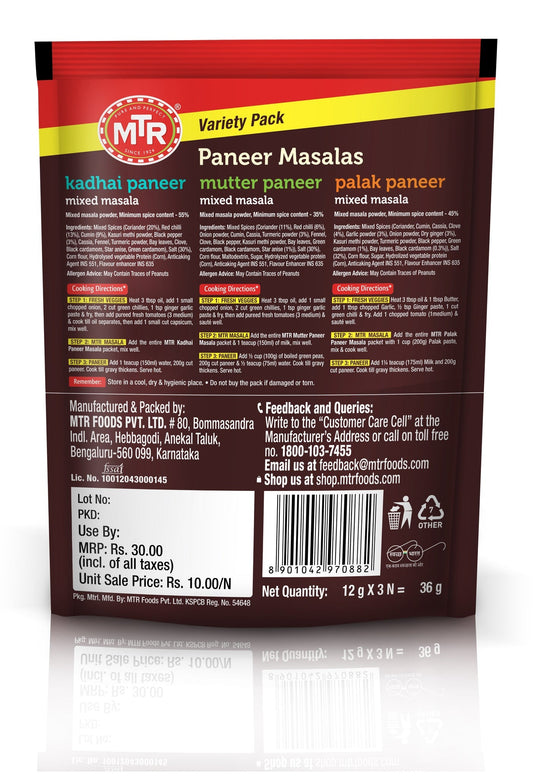 MTR PANEER MASALA VARIETY PACK 36 G (PACK OF 3)