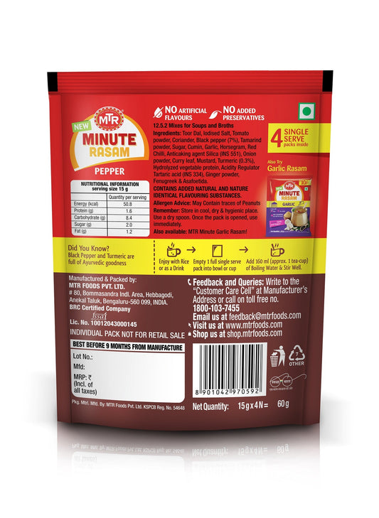 MTR MINUTE PEPPER RASAM 60 G (PACK OF 4)