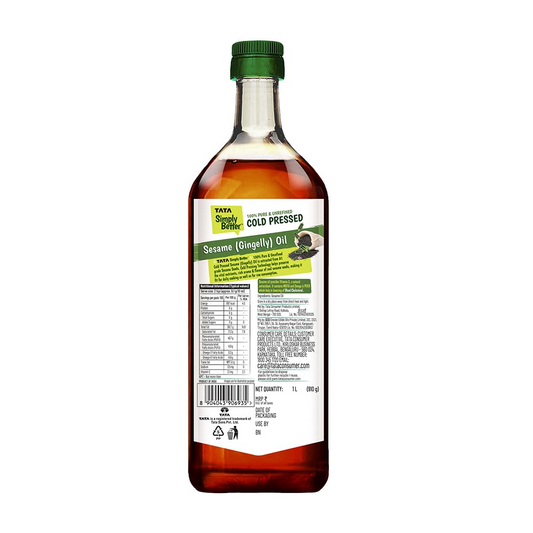 Tata Simply Better Pure and Unrefined Cold Pressed Sesame (Gingelly) Oil, Kolhu/Kacchi Ghani/Mara Chekku/Ganuga, Naturally Cholesterol Free, 1L