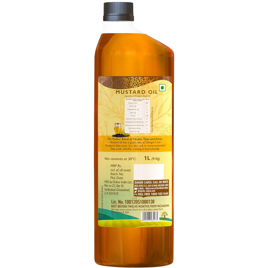 Dabur Cold Pressed Mustard Oil 1L | Healthy Cooking Oil | Goodness of Omega 3 & 6 | Perfect blend of Health, Taste & Aroma