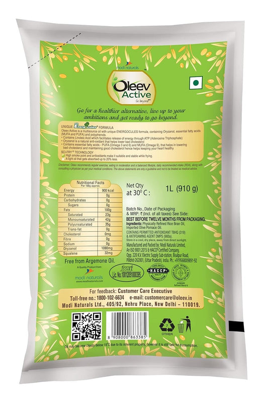 Oleev Active, with Goodness of Olive Oil, 1L Pouch