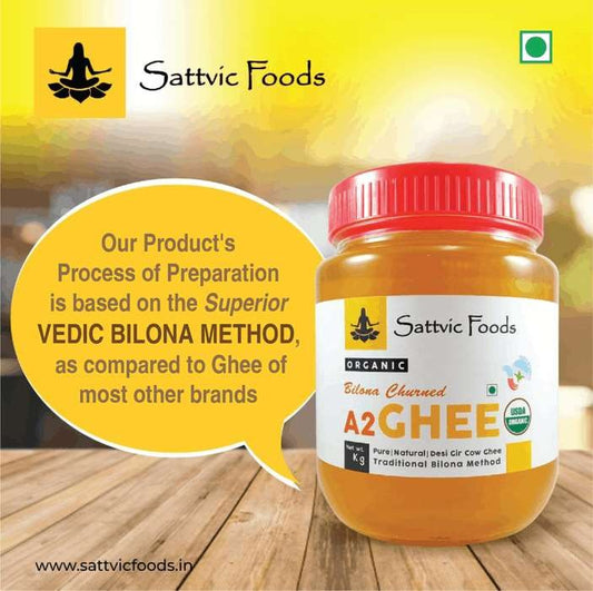 SATTVIC FOODS Organic A2 Desi Gir Cow Ghee (Traditional Bilona Method) 450g Jar