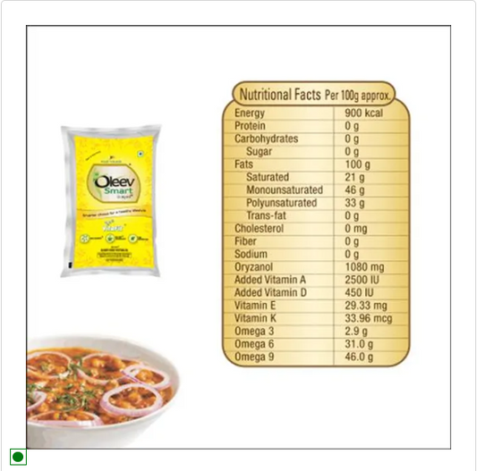 Oleev Smart Edible Oil - Enriched With Vitamin A, D , E & K, 1 L