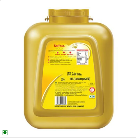 Saffola Gold Refined Cooking oil | Blended Rice Bran & Sunflower oil | Helps Keeps Heart Healthy, 15 L Jar