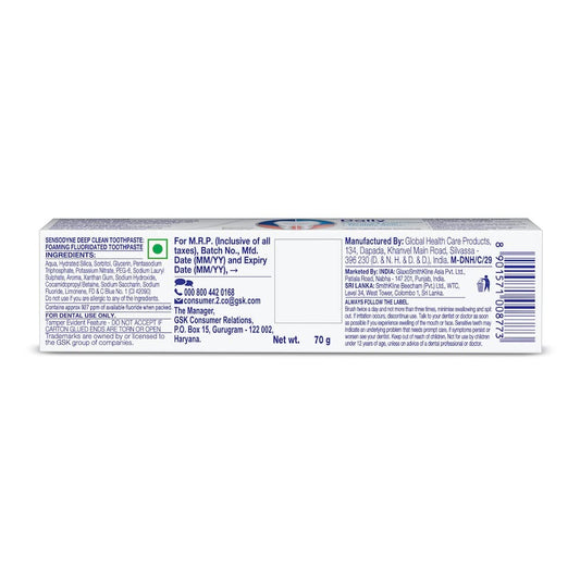 Sensodyne Deep Clean 70g Toothpaste, Sensitive tooth paste for advanced cleaning and lasting freshness