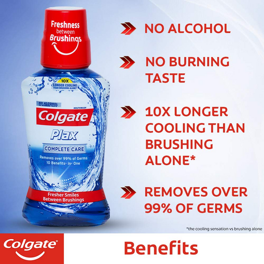 Colgate Plax Antibacterial Mouthwash, 24/7 Fresh Breath, Liquid - Pack Of 250Ml, (Complete Care)