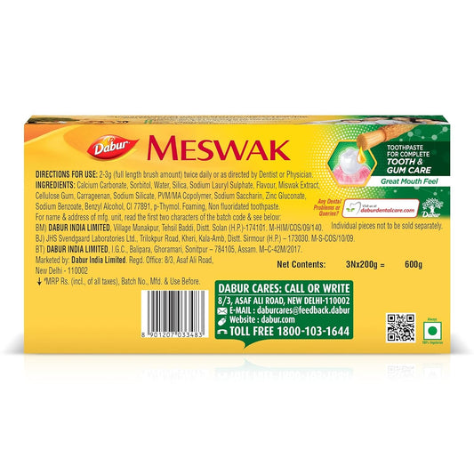 Dabur Meswak Complete Oral Care Toothpaste - 600g (200gx 3, Pack of 3)