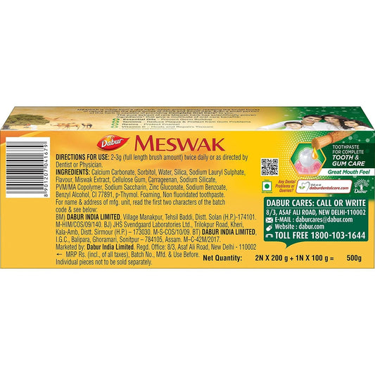Dabur Meswak Complete Oral Care Toothpaste - 500g (2 x 200g + 1 x100g)