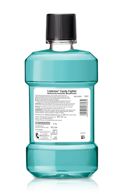Listerine Cavity Fighter Mouthwash Liquid, Removes 99.9% Germs, prevents cavities, 500ml