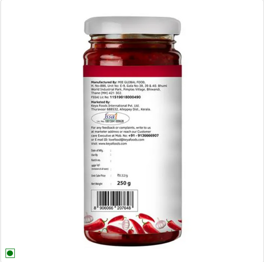 Keya Schezwan Chilli Garlic Chutney - For Preparing Pasta, Spring Roll, Chinese Platter, 250 g Glass Jar