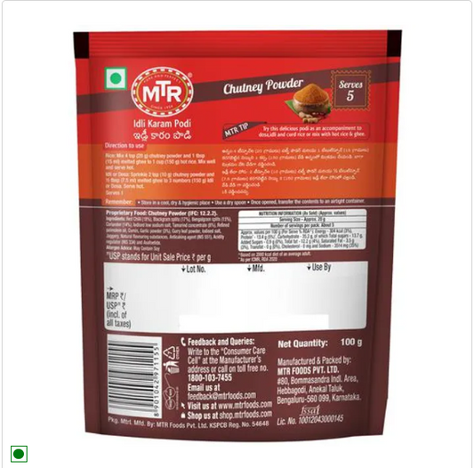 MTR Idli Karam Podi - Chutney Powder, Source Of Protein, 100 g
