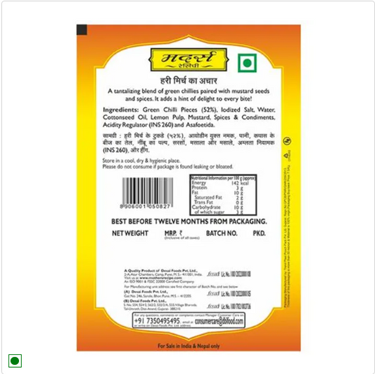 Mother's Recipe Pickle - Green Chilli, 200 g Pouch