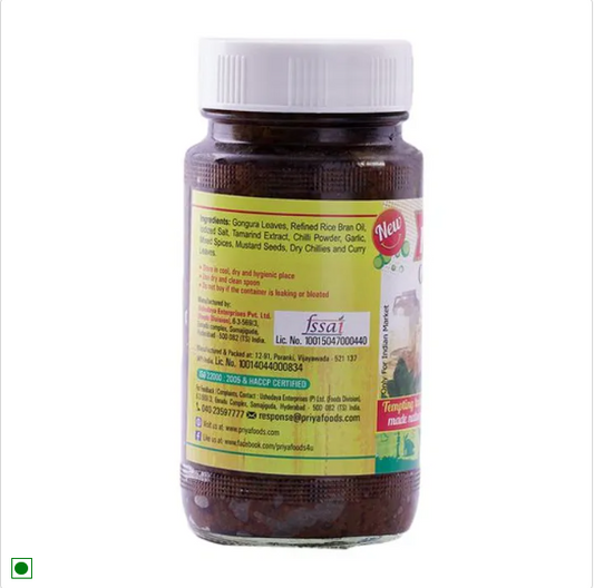 Priya Pickle - Gongura With Garlic, 300 g Bottle