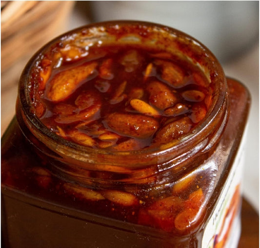 Homemade Love Authentic Punjabi Mango Pickle | Spicy & Tangy Aam Ka Achaar with Raw Mango, and spices mixed with mustard oil (250g
