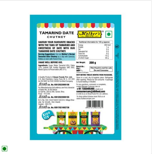 Mother's Recipe Tamarind Date Chutney + Delhi Chaat Chutney + Bhelpuri Chutney, 200 g Each, Combo 3 items