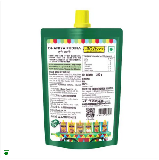 Mother's Recipe Dhania Pudina Chutney, 200 g Pouch