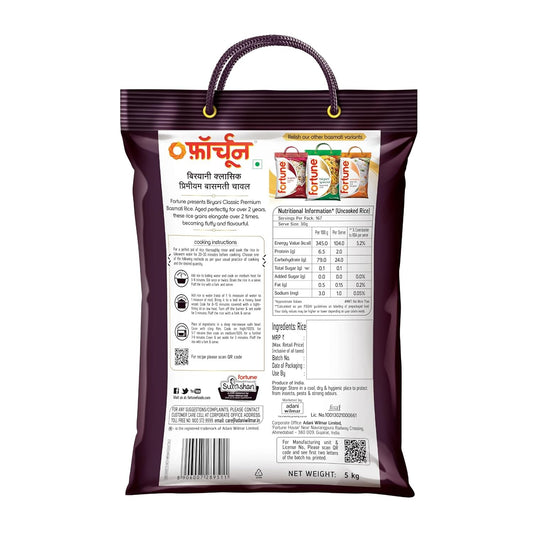 Fortune Biryani Classic, Premium basmati Raw Rice,Aged for 2 Years, 5 KG