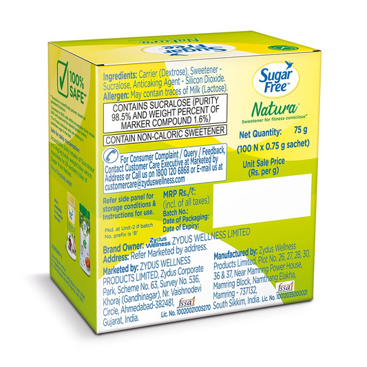 Sugar Free Natura, 100 Sachet |100% Safe| Scientifically Proven & Tested|Sweet like Sugar but with zero calories| 75 g