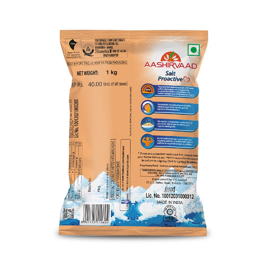 Aashirvaad Salt Proactive, 1kg Pack, Sodium - Reduced diet for Blood Pressure Management and Active Life