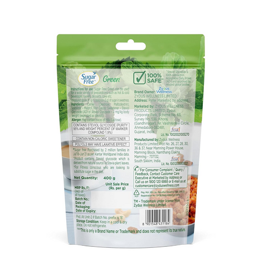 Sugar Free Green Stevia Pouch 400 g |100% Plant based Natural Sweetener