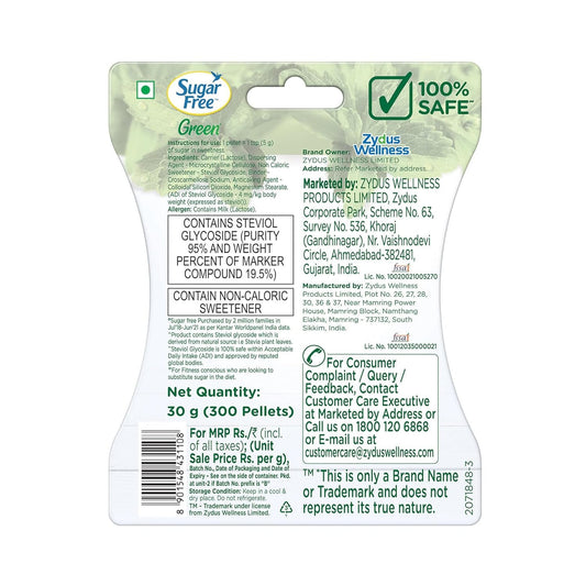 Sugar Free Green Stevia, 300 Pellets | 100% Natural Meethi Tulsi (Stevia) leaves| Sweet like Sugar but with zero calories | 30g