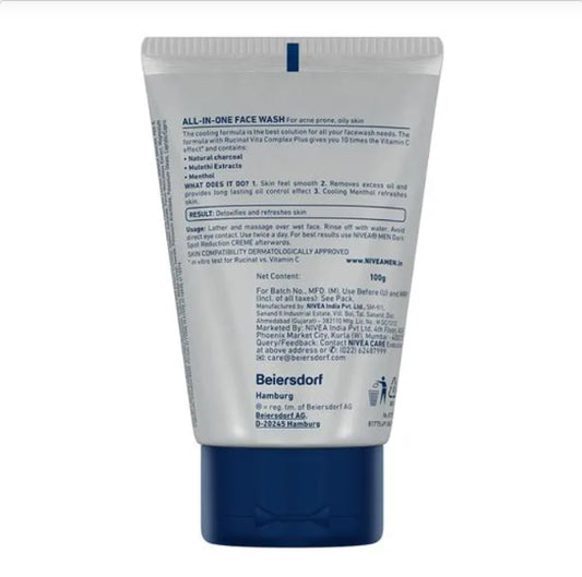NIVEA All In 1 Charcoal Face Wash - Detoxify & Refresh Skin With 10x Vitamin C Effect, For All Skin Types, 100 g Tube