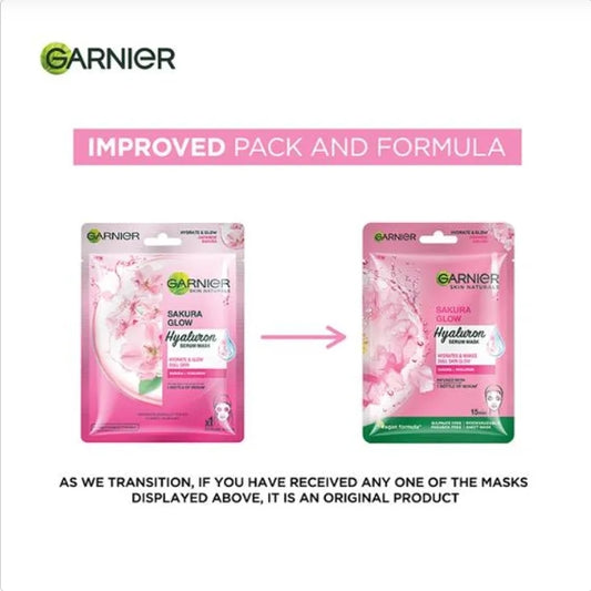 Garnier Sakura White Face Serum Sheet Mask - Hydrates & Brightens The Skin, 28 g