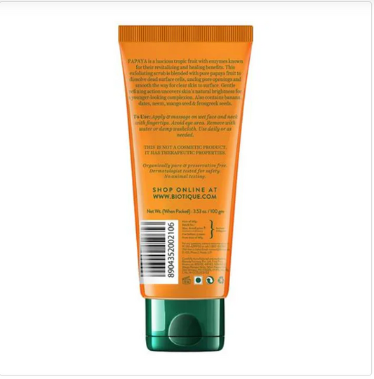 BIOTIQUE Papaya Tan Removal Brightening & Revitalizing Face Scrub - For All Skin Types, 100 g