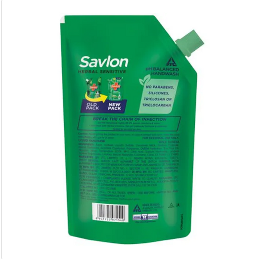 Savlon Herbal Sensitive Germ Protection Liquid Handwash - 90% Natural Origin, 675 ml