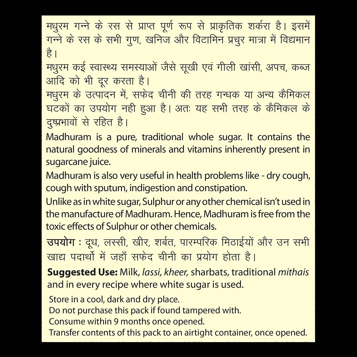 Jaggery Powder is a natural sweetener that is made from sugarcane juice. Jaggery Powder has a unique flavor that is similar to caramel and is commonly used in Indian cuisine. Patanjali Madhuram Sugar (Jaggery Powder) is a premium-quality jaggery powder that can be used in a variety of dishes, such as desserts, beverages, and snacks. Madhuram is a pure, traditional whole sugar.