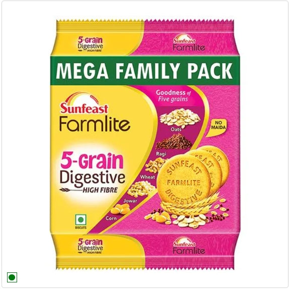 - HIGH FIBRE MULTIGRAIN: Sunfeast Farmlite 5 Grain Digestive biscuit is a high fibre multigrain biscuit that’s made for today’s multitaskers.
