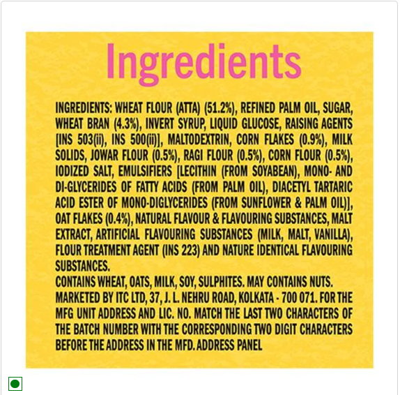 Wheat Flour, Refined Palm Oil, Sugar, Wheat Bran, Invert Syrup, Liquid Glucose